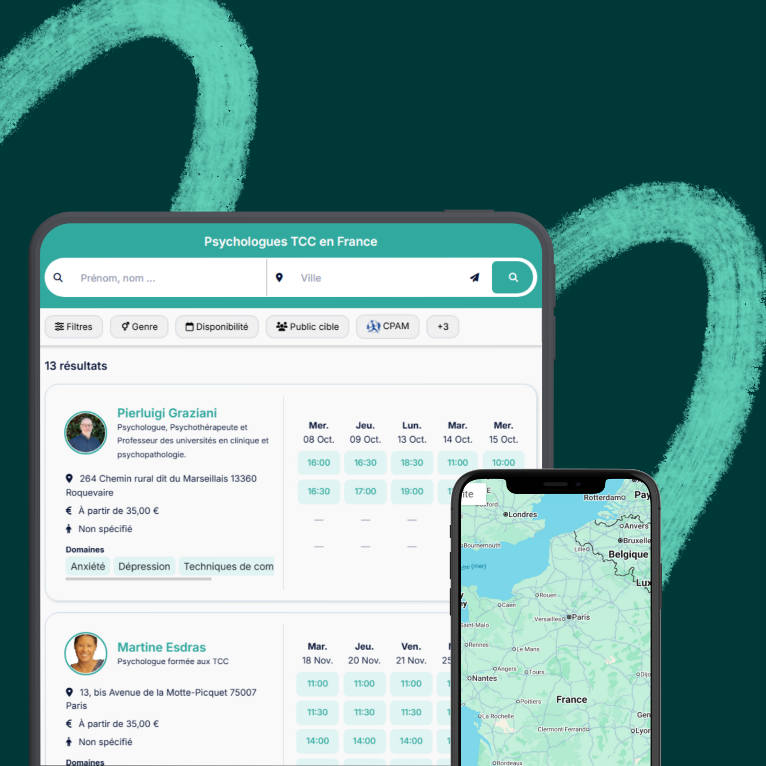 Plateforme dédiée à la visibilité et à la mise en valeur des psychologues formés aux thérapies comportementales et cognitives.