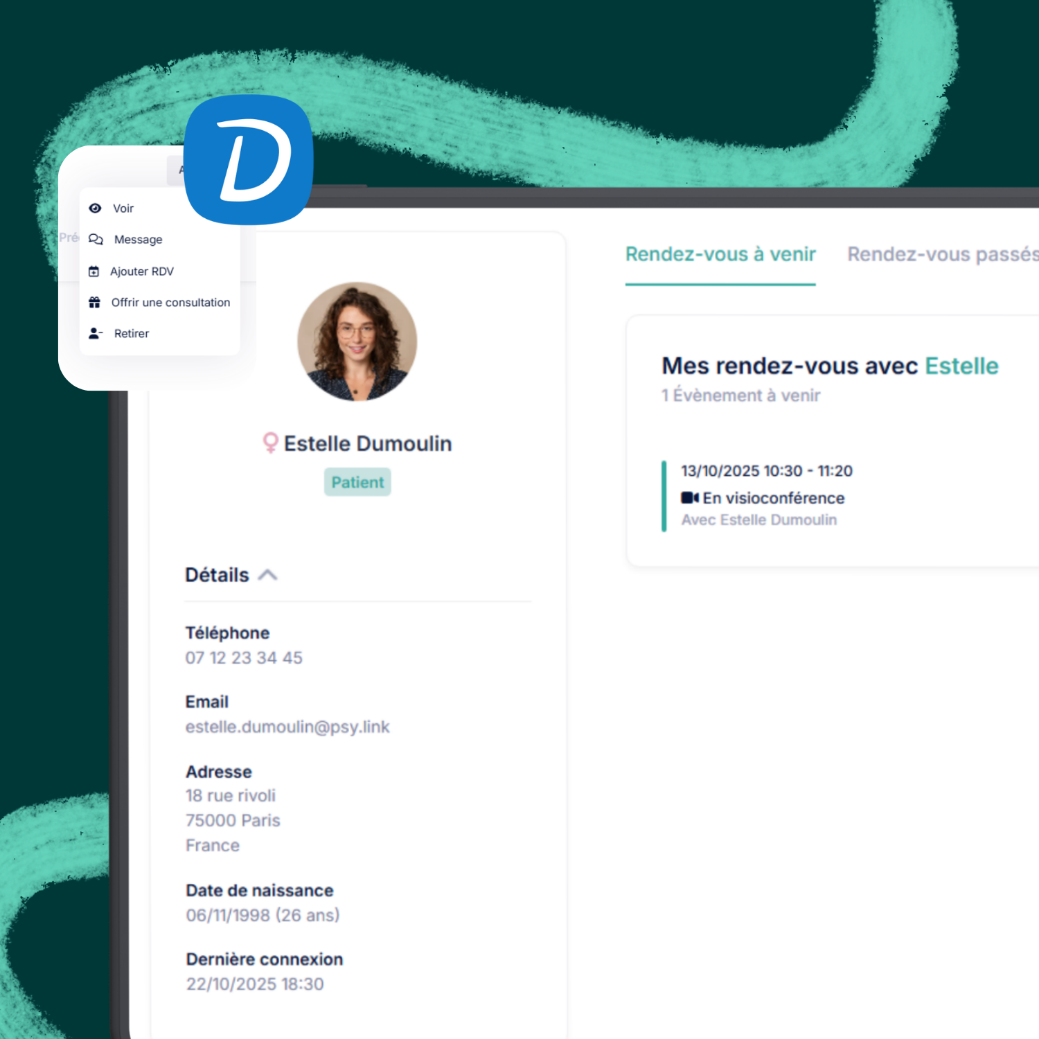 La formule PRO inclut toutes les fonctionnalités de l'annuaire ainsi que des outils avancés pour la gestion des consultations, un système de visioconférence intégré, la gestion des paiements, un agenda intégré, une messagerie sécurisée et bien plus encore pour optimiser votre pratique.